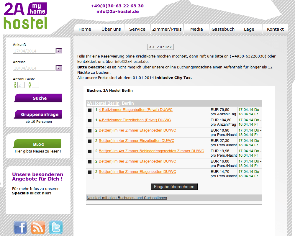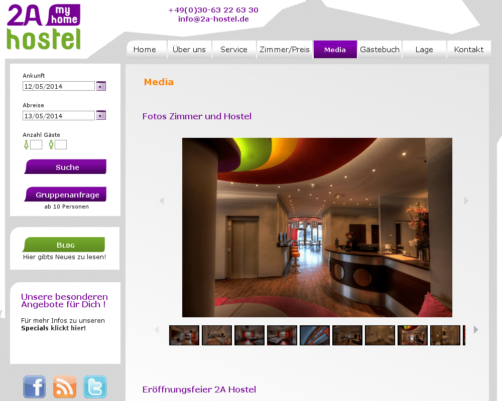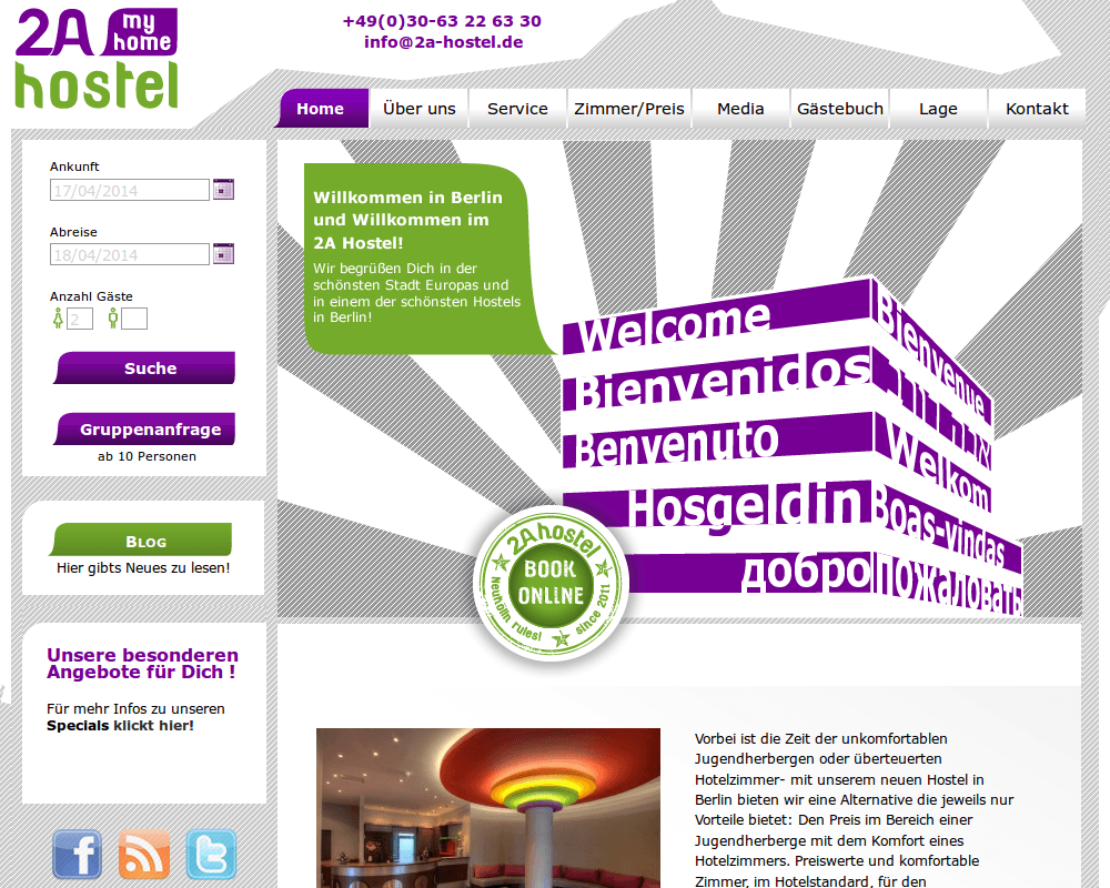 Webseite für das 2a-Hostel in Berlin Neukölln.